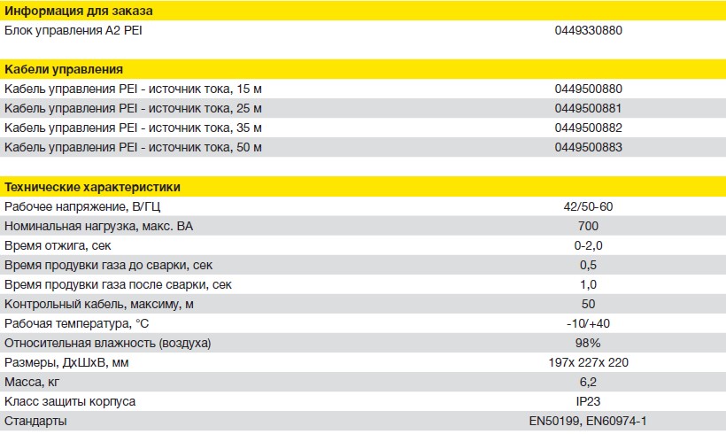 Упрощенная аналоговая система управления блока A2 PEI требует минимального обучения сварщика. Применяется с источниками сварочного тока